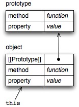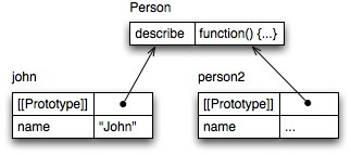 prototype relationship between two objects. Prototypes work like in JavaScript: