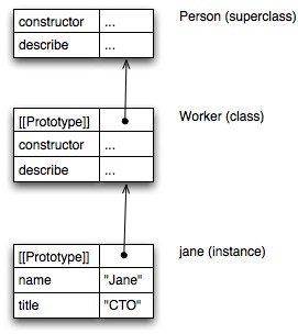 > Worker.isPrototypeOf(jane) // normally: jane instanceof Worker