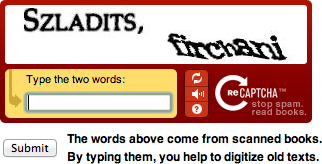 reCAPTCHA. It uses humans to help transcribe old scanned books where automatic recognition fails at about 30% of the content.
