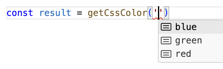 Lastly, TypeScript gives us auto-completion for the argument of getCssColor():