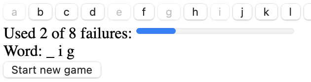 countFailures() How many letters did the user guess wrong? Each input letter we can’t find among the word letters is a failure.